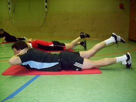Der Einsatz von Hanteln und Bällen differenziert die Intensität der Übungen. (Fuß-)Ball- und Hockeyspiele runden das Angebot ab.