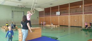 Körperkoordination wie Reaktion, Orientierung und Gleichgewichtssinn werden geschult und dabei lernt das Kind die Auswirkungen auf den eigenen Körper bei Übungen an den Geräteaufbauten kennen.