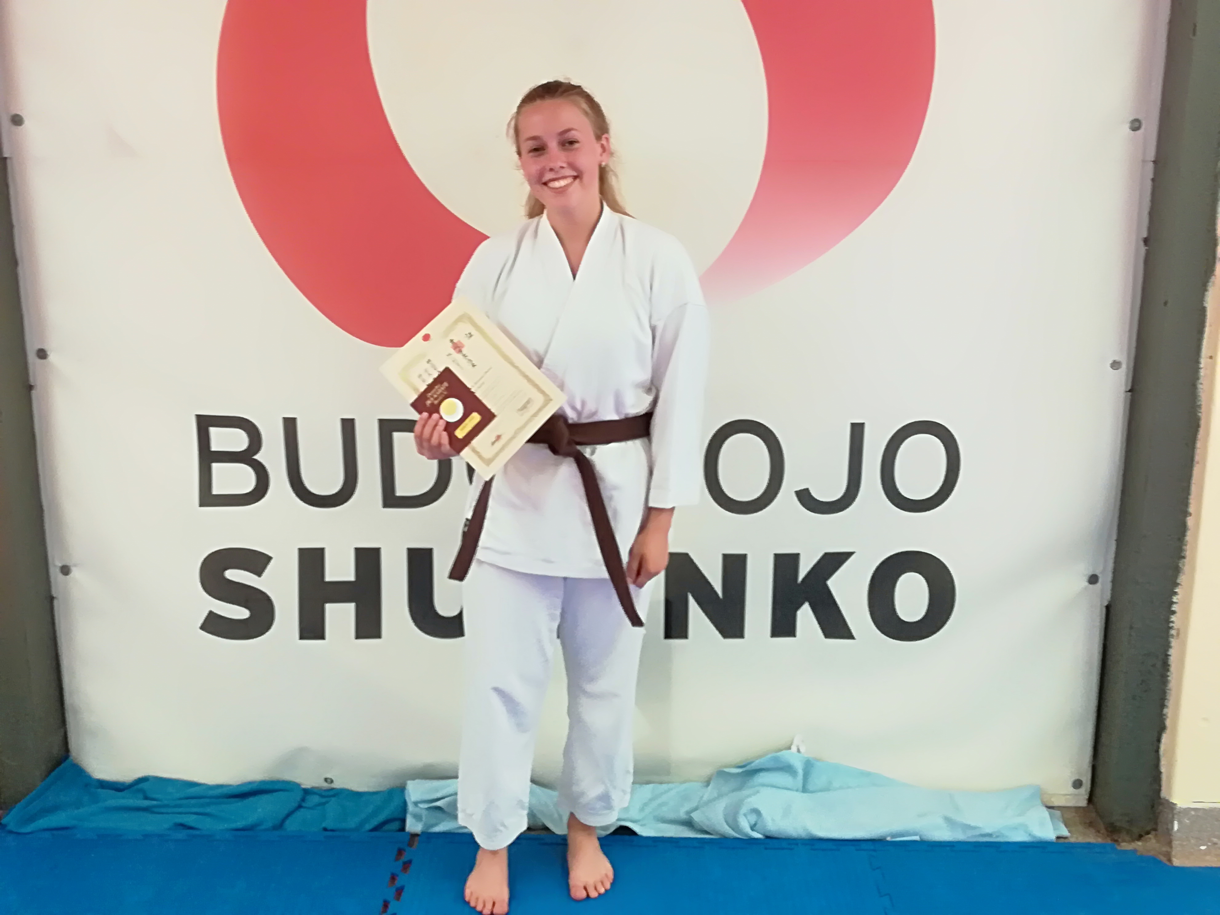 Am 9. Juni hat unser Karateka Kira Frey mit Bravour die Prüfung zum 1. Braungurt den 3. Kyu bestanden. Sie hat lange und hart dafür trainiert und darf mit Recht STOLZ auf ihre erbrachte Leistung sein.
